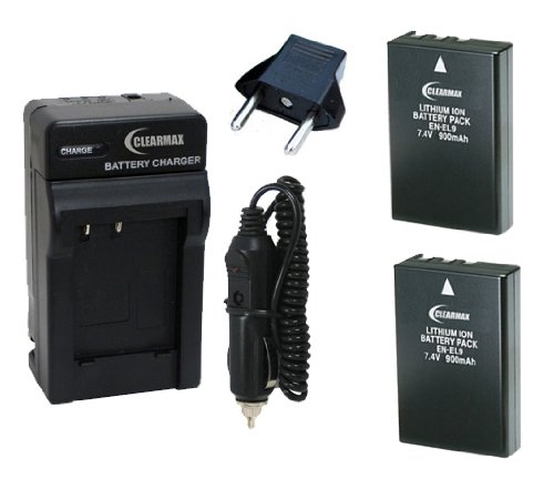 Buy ClearMax Two (2) EN-EL9 / ENEL9 High Capacity Batteries and Multi Voltage Charger For Nikon D40, D40x, D60, D3000, D5000 Digital SLR Cameras